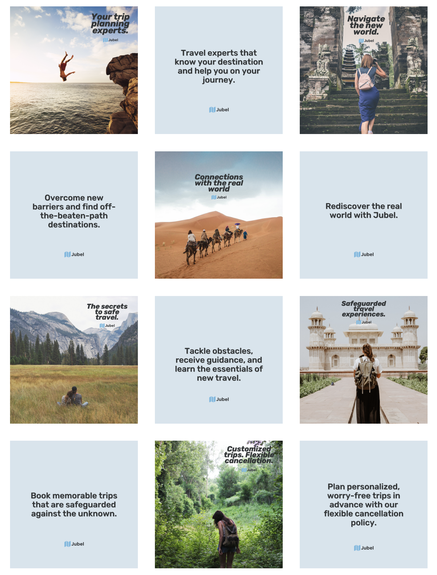 Below you’ll find social media deliverables and destination descriptions I wrote for the Jubel website.