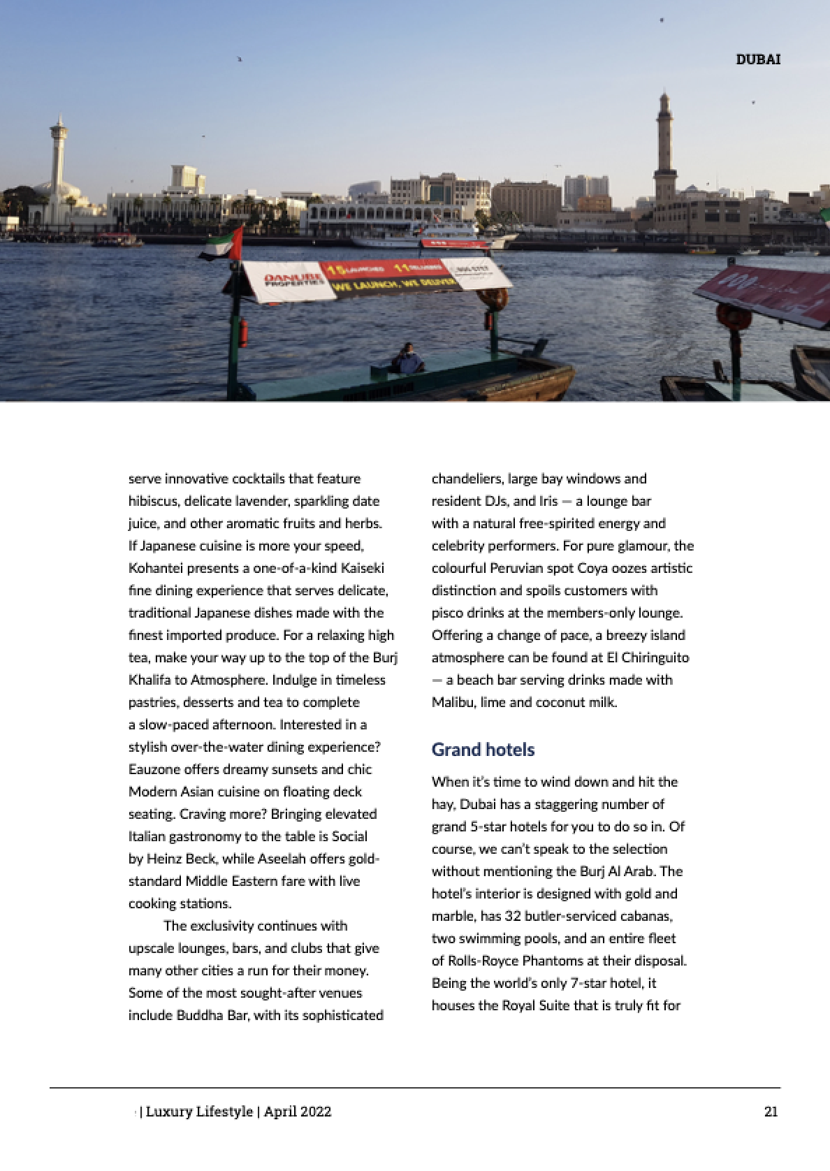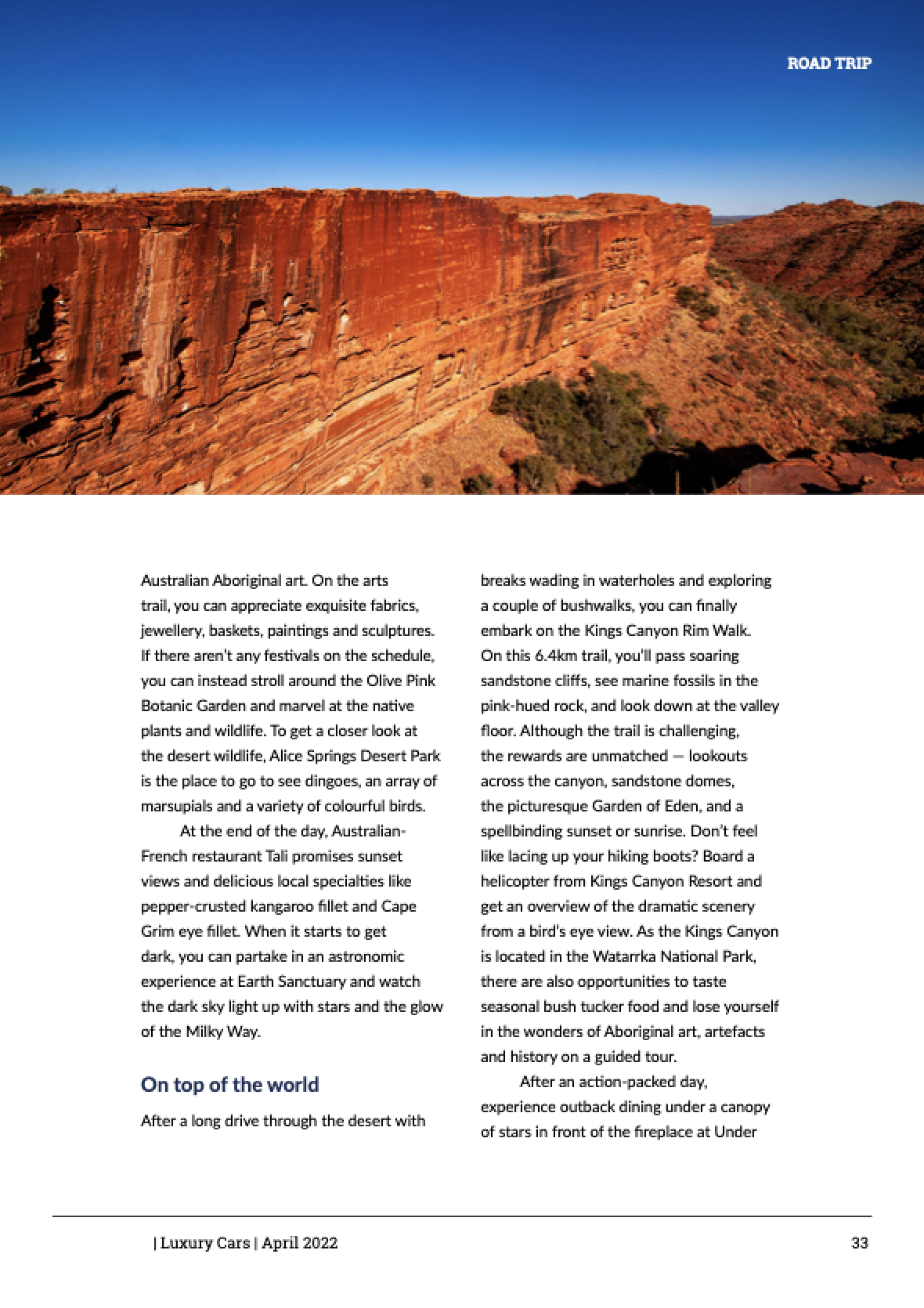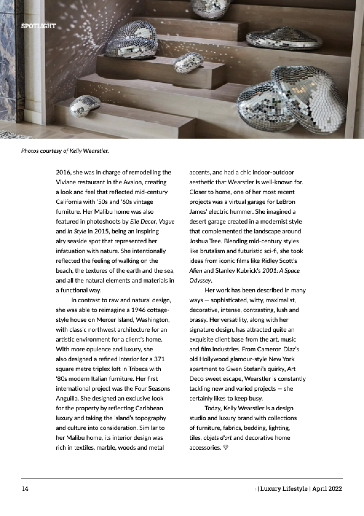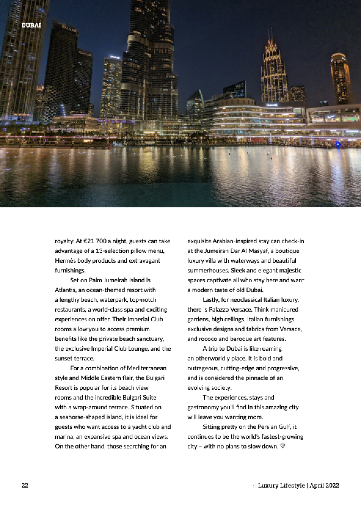 I wrote pieces for a bi-monthly magazine that focused on aspirational lifestyle content. The articles were centered around the luxury lifestyle (products, people, and places), real estate, travel, and locations popular with the wealthy.